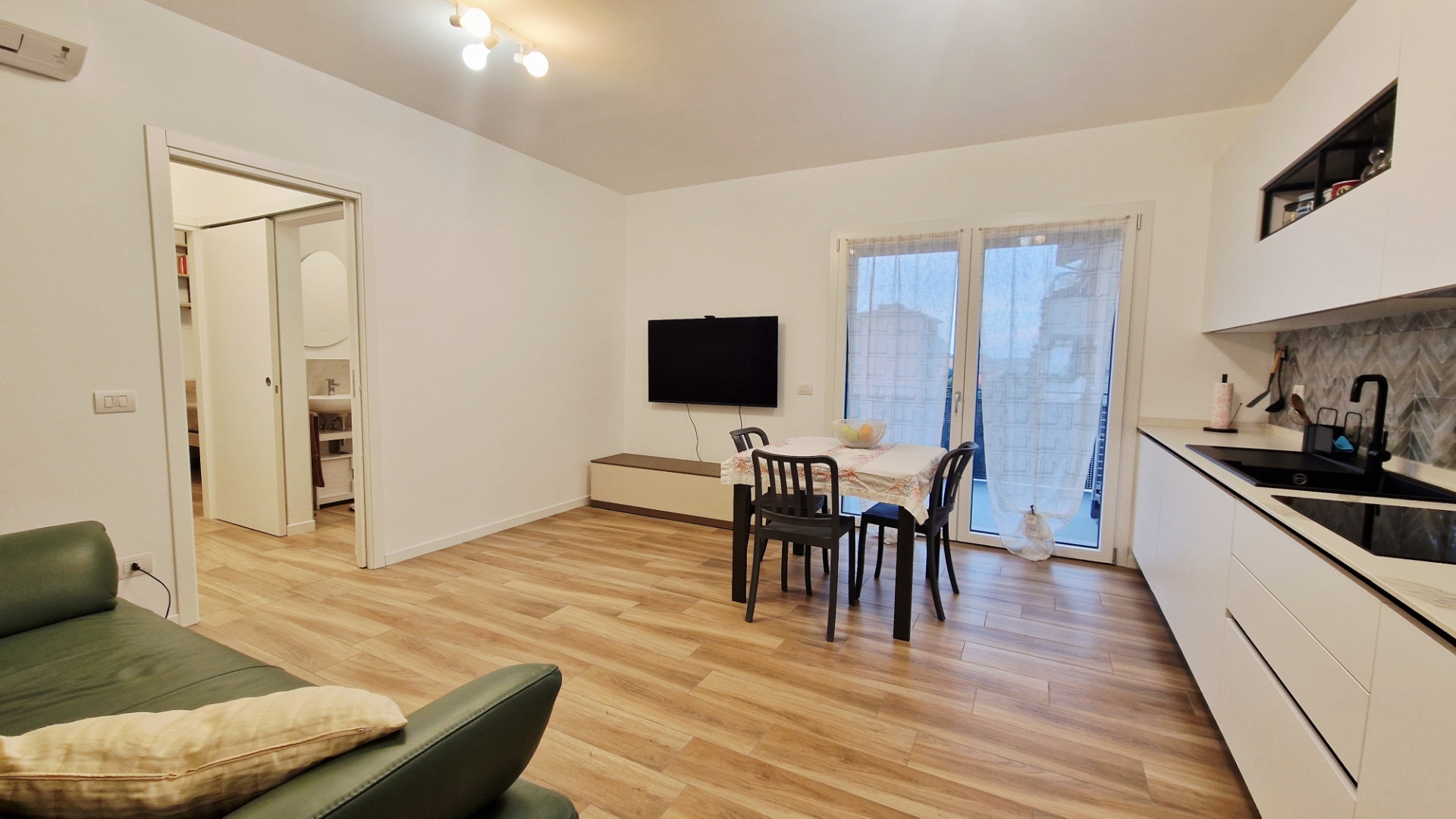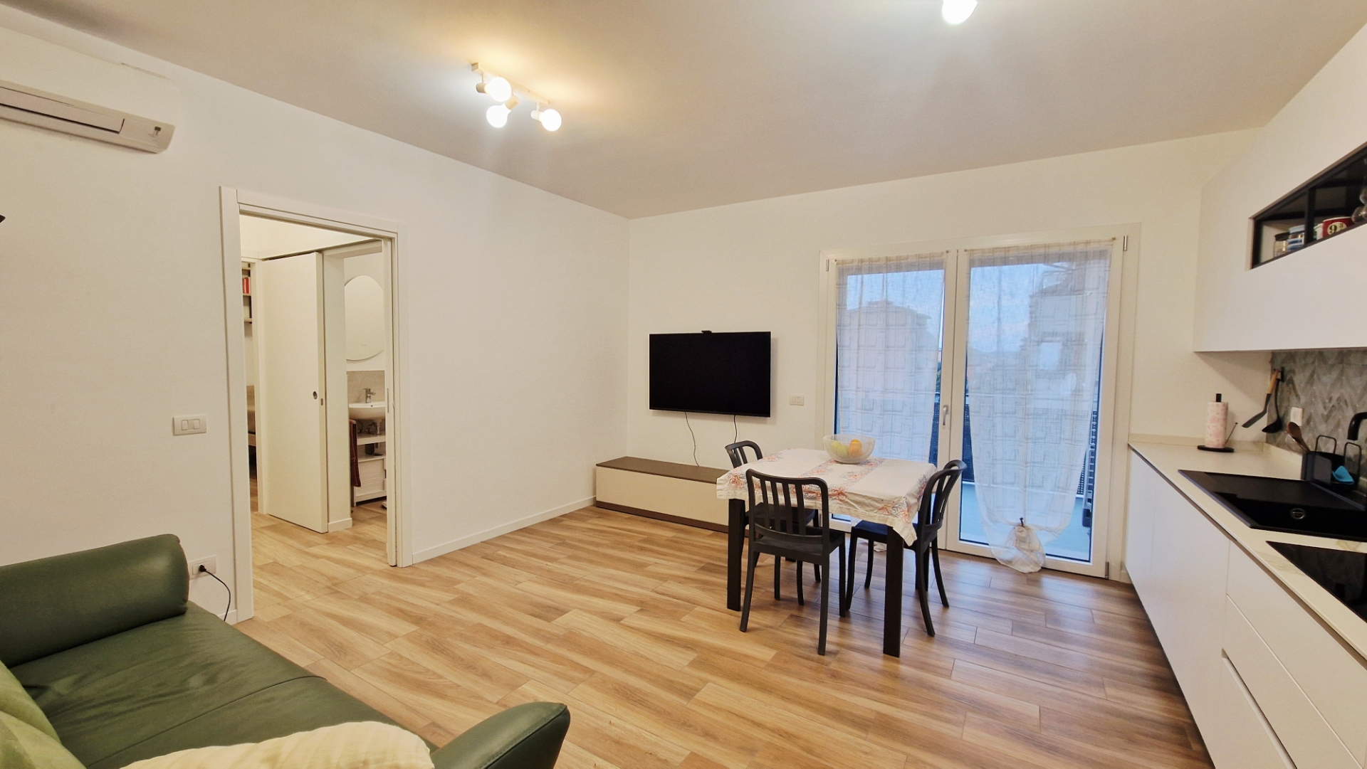 Immagina di entrare in una casa moderna, luminosa e pronta da vivere, senza dover fare nulla: questo bilocale di nuova costruzione in classe energetica A4 ti offre proprio questo. Situato al terzo piano, in una via chiusa e silenziosa, è la soluzione ideale per chi cerca eleganza, comfort e sostenibilità. L’appartamento è chiavi in mano, completo di arredi di qualità, e si compone di: zona leaving con cucina lineare a piano a induzione e accesso diretto al terrazzo, perfetta per momenti di relax o cene con gli amici; camera matrimoniale spaziosa, pensata per il massimo confort; bagno finestrato con box doccia e sanitari sospesi, pratico e moderno; zona lavanderia funzionale; porte scorrevli e gres porcellanato effetto legno, eleganza e praticità in ogni dettaglio. Dotazioni tecniche e confort: classe energetica A4, cappotto esterno con consumi estremamente ridotti rispetto a una casa tradizionale; riscaldamento a pavimento e aria condizionata, per vivere sempre nel massimo comfort; box di pertinenza e posti auto esterni, praticità e valore aggiunto. Zona silenziosa e ben collegata. Non lasciarti sfuggire questa occasione unica in zona. bilocale moderno e sostenibile, pronto per diventare la tua casa o il tuo investimento vincente