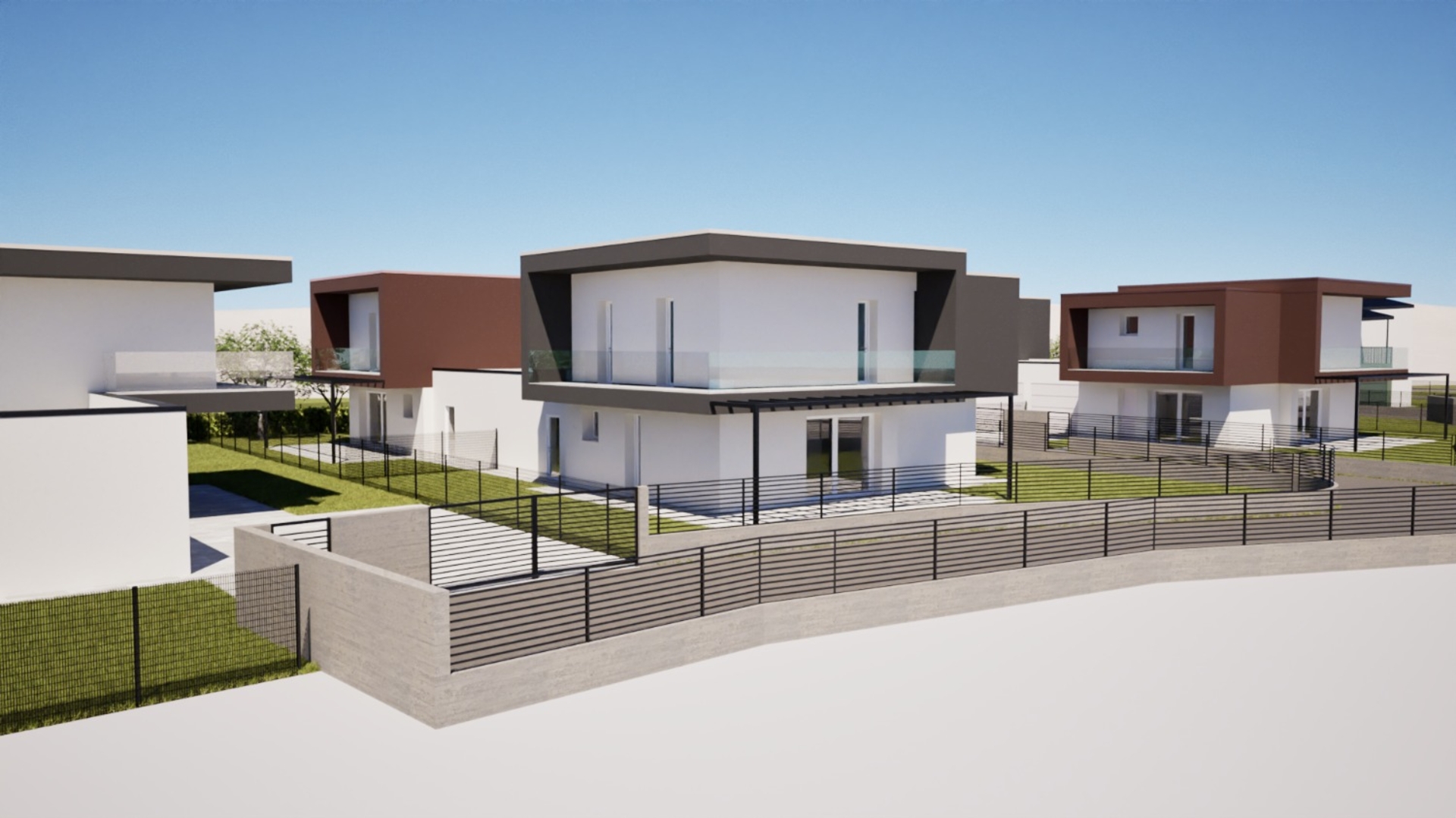 Nel cuore di una zona residenziale tranquilla, proponiamo ville bifamiliari di nuova costruzione, progettate con attenzione al design contemporaneo, alla funzionalità e al comfort abitativo. Caratteristiche principali: Giardino privato di 250 mq, ideale per momenti di relax all’aperto e attività all’aria aperta. Piano terra: ampia zona giorno di circa 83 mq con grandi vetrate luminose, cucina separata, bagno finestrato, lavanderia e garage. Piano primo: 83 mq totali con tre camere da letto, due bagni, ripostiglio e due balconi con vista sul verde circostante. Garage al piano terra spazioso e comodo di 26mq . La villa si distingue per gli ambienti ampi e luminosi, perfetti per la vita familiare moderna. Gli spazi interni sono studiati per garantire comfort, privacy e funzionalità, con la possibilità di creare uno studio o un’area lavoro in casa. Posizione strategica: Situata in un contesto residenziale curato, la villa offre facile accesso a scuole, negozi e mezzi pubblici, combinando tranquillità e praticità. Perché sceglierla: Ultima porzione disponibile – soluzione esclusiva, Materiali di qualità e finiture moderne, Progetto ecosostenibile con attenzione al benessere abitativo, Pronta da abitare, ideale sia come prima casa sia come investimento ad alta redditività. Questa villa non è solo un’abitazione, ma una proposta abitativa moderna, dove design, comfort e natura si incontrano per creare un vero progetto di vita. Per informazioni e visite contattaci in ufficio! rif. 2615